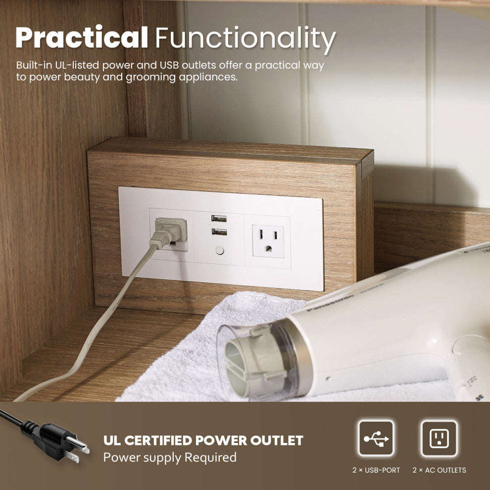 Built-in UL-listed power and USB outlet