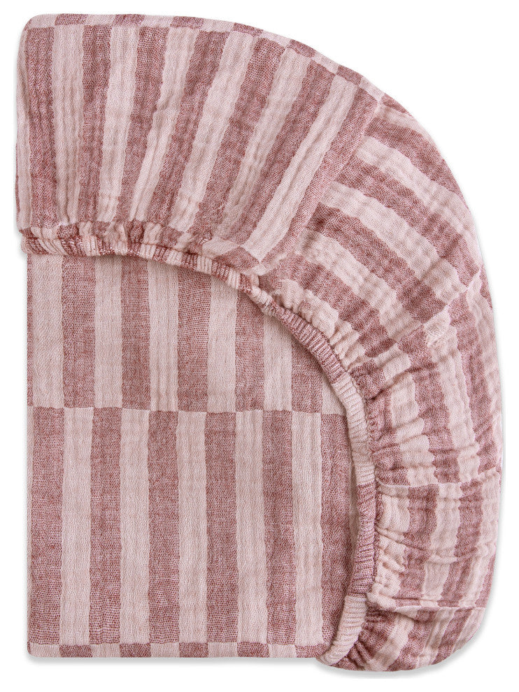All-Stages Midi Crib Sheet, GOTS Certified Organic Muslin Cotton, Maroon Stripe