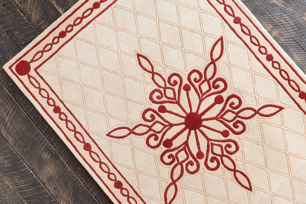 Update the look of your living room, bedroom or entryway with the Allie Abstract Contemporary Area Rug from Chandra. Hand-tufted by skilled artisans, this interior area rug features authentic craftsmanship and complementary shades of red and light peach against a cream background. The rug has a durable canvas backing and a 0.75" pile. The abstract design is sure to make an alluring statement in your home.