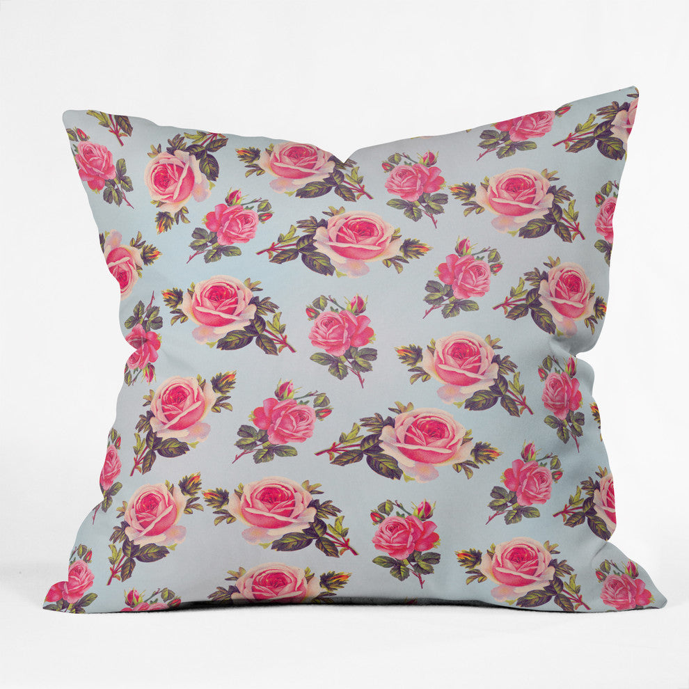 Allyson Johnson Pink Roses Outdoor Throw Pillow