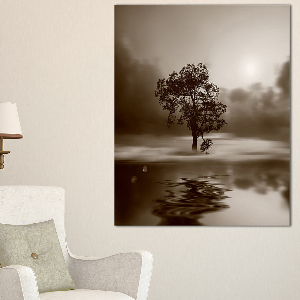 The Alone Tree on Island in Sepia canvas art print is sure to make an impression on anyone who sees it. This artwork is gallery wrapped around a 1-inch solid wood frame and arrives carefully packaged and entirely ready to hang on the wall. Design Art only uses the highest resolution and pigments to ensure a crisp colorful print that is never faded or pixelated. This artwork is sure to be a conversation starter in any home or office.