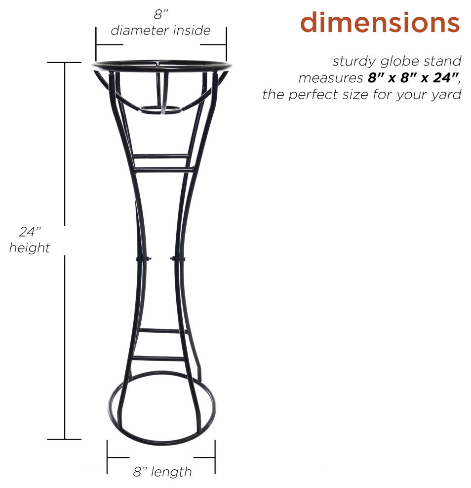 Add a shiny and beautiful look to your outdoor decor sleek, modern way. This durable, elegant stand fits perfectly with any design style, and Gazing Globe/Stand. The globe is not included. Whether you use this as a decoration in your garden, on the patio, on your deck, or near the entrance way in front of your home, Alpine''s Gazing Globes are sure to bring a playful and inviting atmosphere, while leaving a long-lasting impression!• Measures 8"W x 8"L x 24"H, made of Iron• Can fit any 10" gazing globe/stands• Powder-coated for weather resistance• Made of durable materials that will perfect your home, yard, and garden decor• Includes a limited one-year hassle-free manufacturer''s warranty