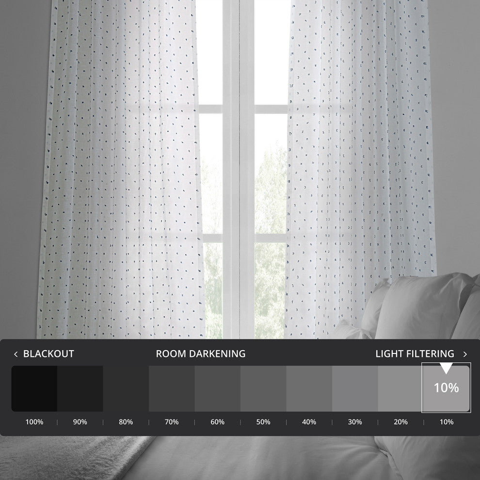 Altair Blue Patterned Linen Sheer Curtain Single Panel, 50"x108"