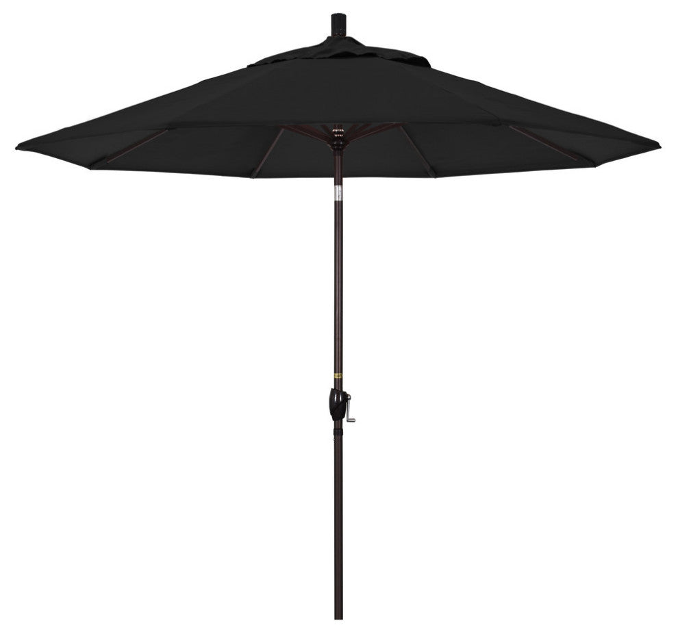 This traditional 9 foot California Umbrella market style offers the residential owner a beautiful market design without taking over their space. The aluminum frame has a simple crank to open and push- to- tilt design. The push-button tilt style keeps the tilt feature and the user-friendly, crank-to-open feature separate within the frame which adds to the umbrella-s longevity. Owners can simply crank open their umbrella and push a button to tilt canopy towards the sun. This umbrella also features Sunbrella fabrics, which are built on a foundation of solution-dyed acrylic yarn, the most resilient and solid material for prolonged sun exposure, to offer even longer color retention rating than competing material sources.