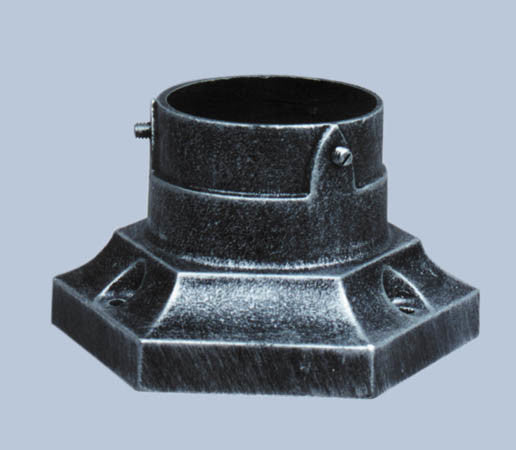 • Please see additional images for color swatch Stub Post Base for 3? outer diameter posts. Height 3 1/2" x 6 3/8" Wide bottom of base. Made of cast aluminum.