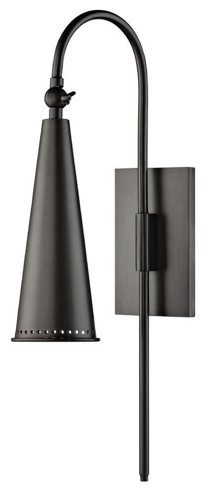 Alva 1 Light Gooseneck Wall Sconce, Old Bronze Finish, Old Bronze Spun Metal