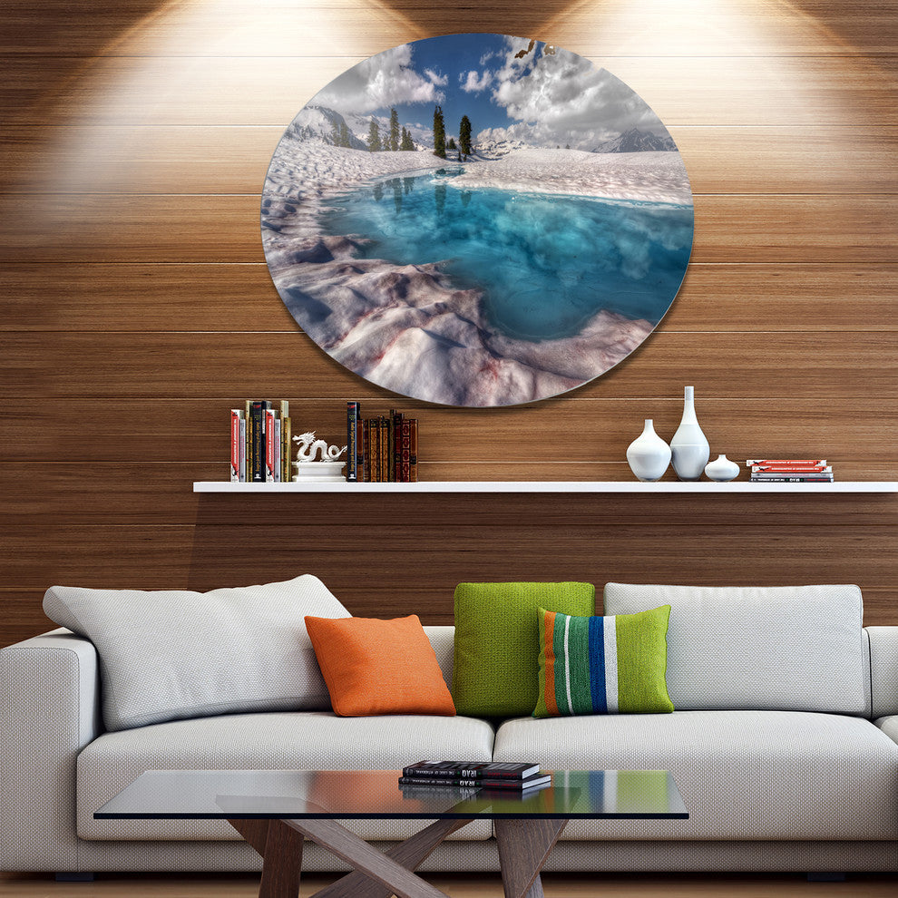 Amazing Blue Melt Lake In Fog, Landscape Art Disc Metal Artwork, 36"