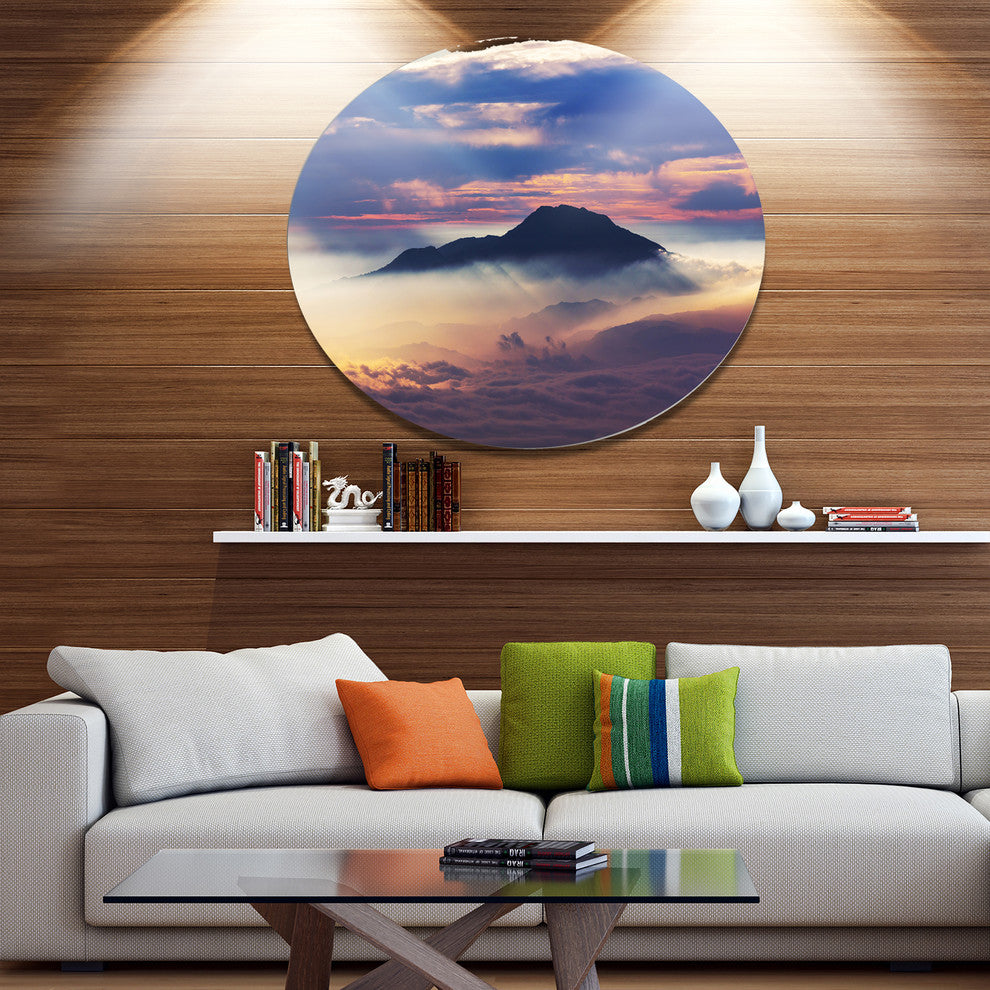Amazing Java Mountain In Fog, Landscape Large Disc Metal Wall Art, 23"