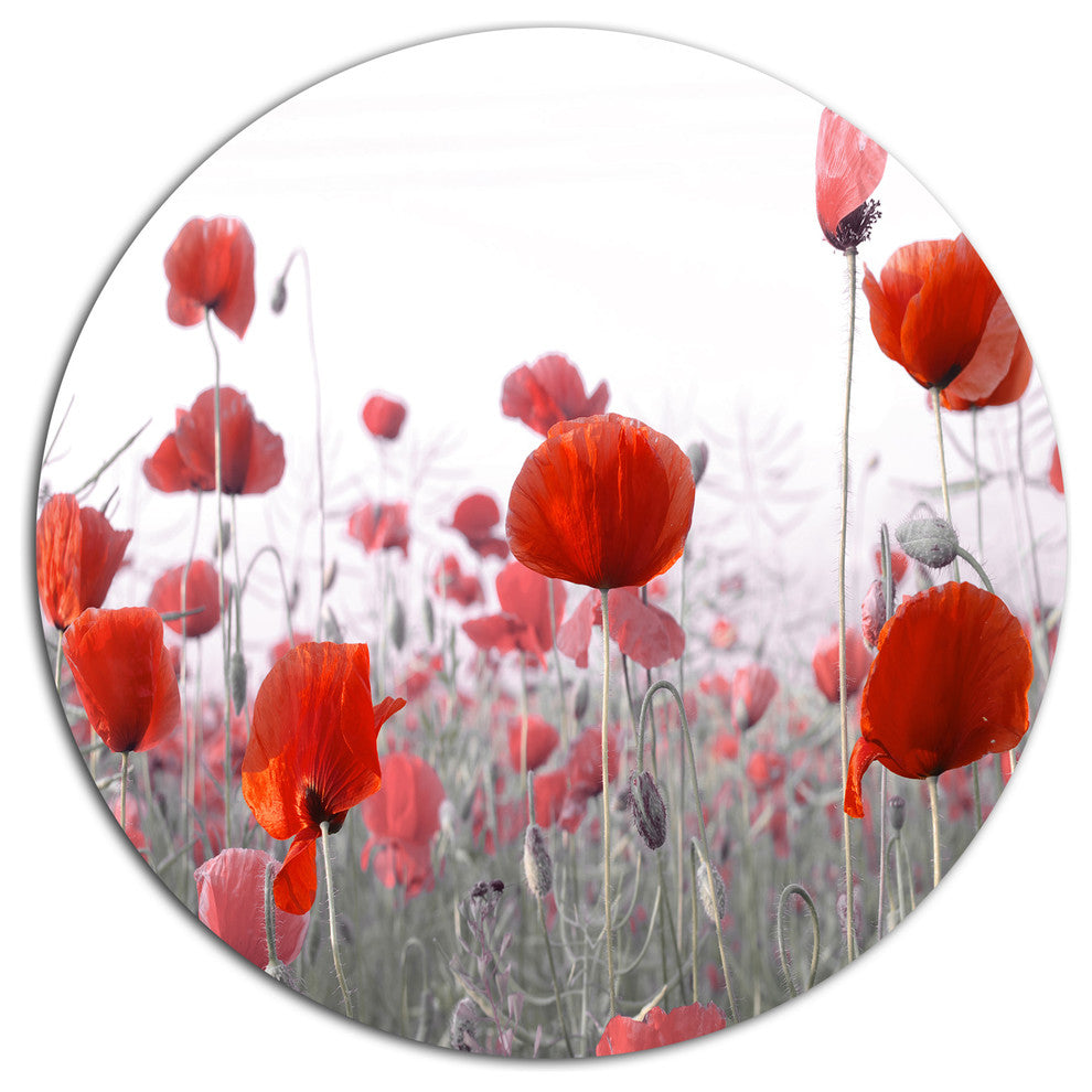 Amazing Red Poppy Flower Garden, Flower Large Disc Metal Wall Art, 36"