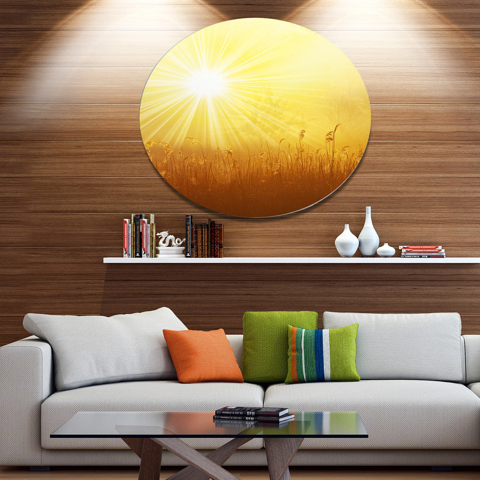 Amazing Sunrise Over Meadow, Landscape Round Metal Wall Art, 36"
