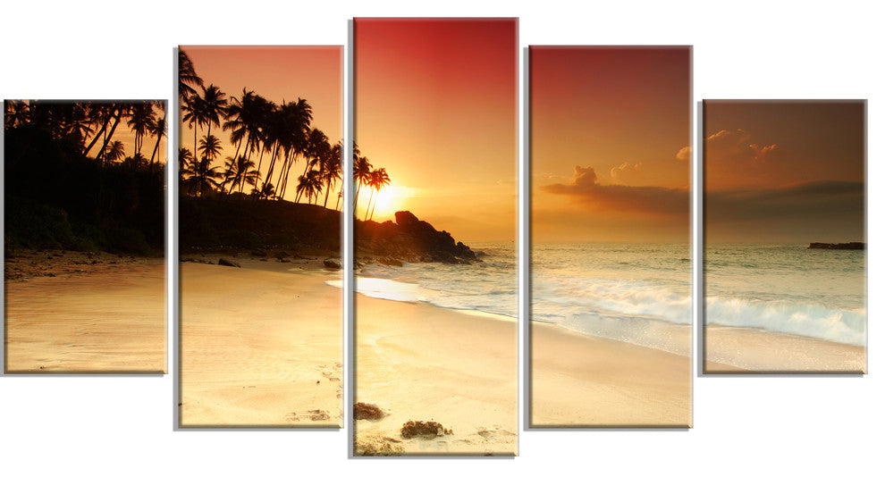 "Amazing Sunset And Beach in Sri Lanka" Seashore Wall Art, 5 Panels, 60"x32"