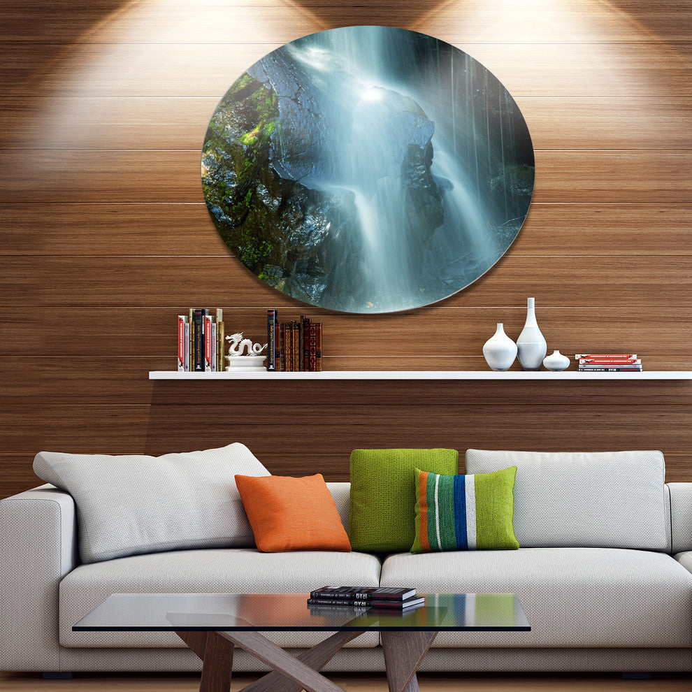 Amazing White Water Cascade, Landscape Large Disc Metal Wall Art, 23"
