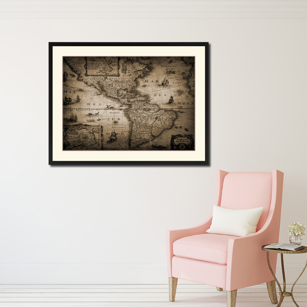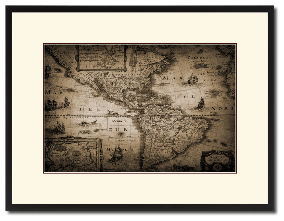 America Vintage Sepia Map Canvas Print, 16"x21"