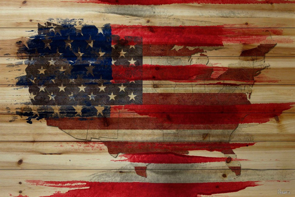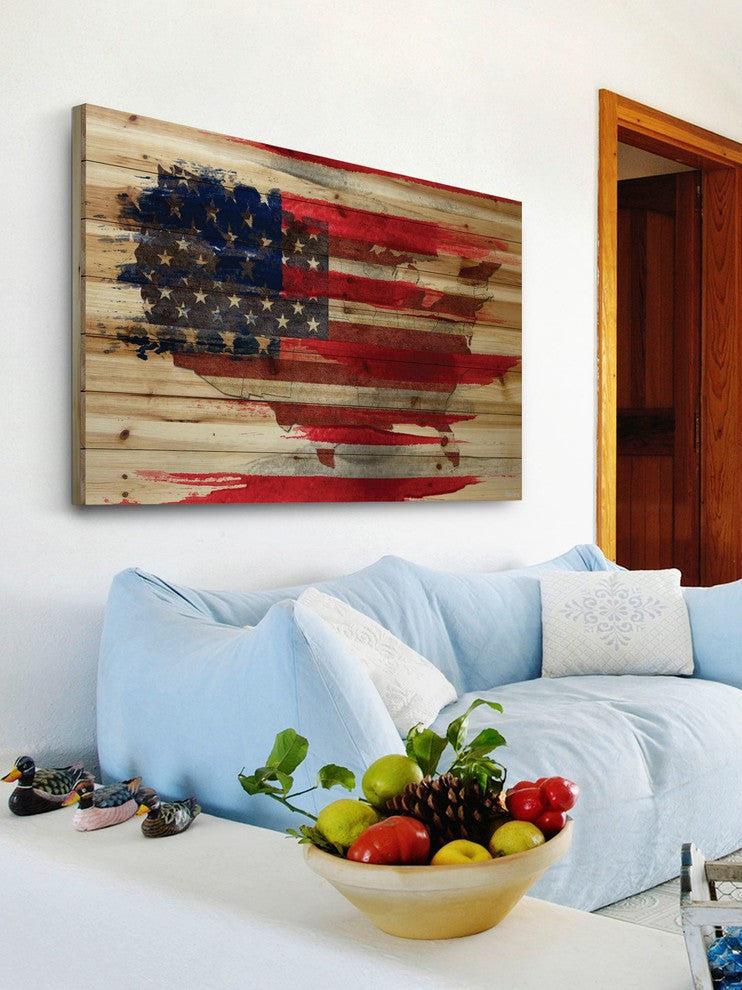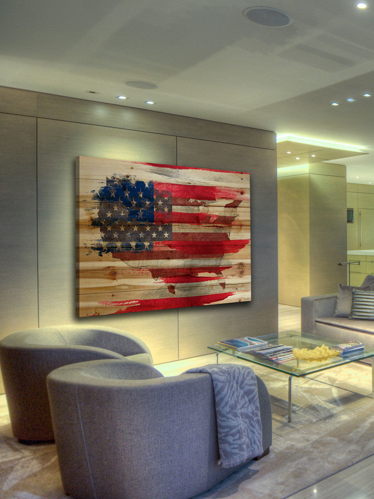 "American Map" Painting Print on Natural Pine Wood, 60"x40"