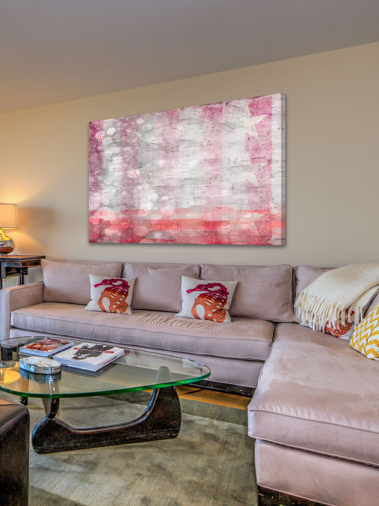 Striking and unique, the "American Stars" Print on Canvas by Parvez Taj will bring your walls to life. Printed on canvas, this 45 inch wide by 30 inch tall contemporary artwork will make a statement in any living room, dining room, or bedroom.- Fine art canvas print by Parvez Taj- Professionally hand stretched- Gallery wrapped in sustainable, non-warping wood- Arrives ready to hang- Made in the USA- Includes a certificate of authenticity- Artist signature on the front