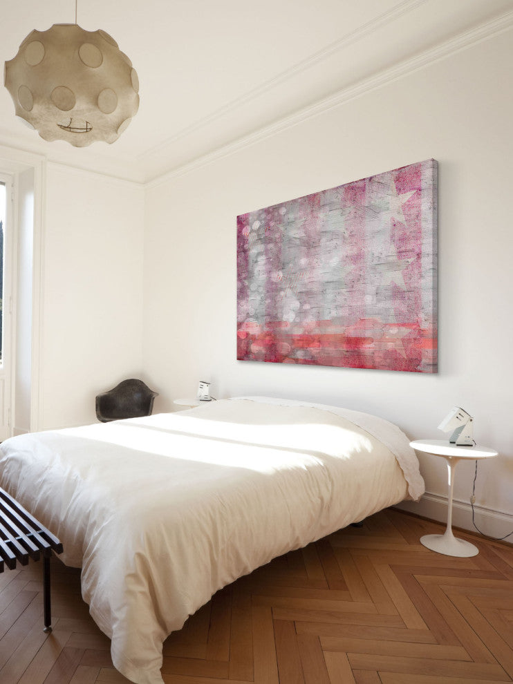 Striking and unique, the "American Stars" Print on Canvas by Parvez Taj will bring your walls to life. Printed on canvas, this 60 inch wide by 40 inch tall contemporary artwork will make a statement in any living room, dining room, or bedroom.- Fine art canvas print by Parvez Taj- Professionally hand stretched- Gallery wrapped in sustainable, non-warping wood- Arrives ready to hang- Made in the USA- Includes a certificate of authenticity- Artist signature on the front