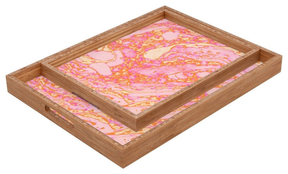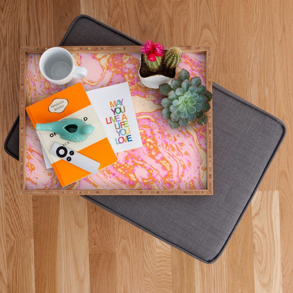 Amy Sia Marble Orange Pink Rectangular Tray, 18"x14"