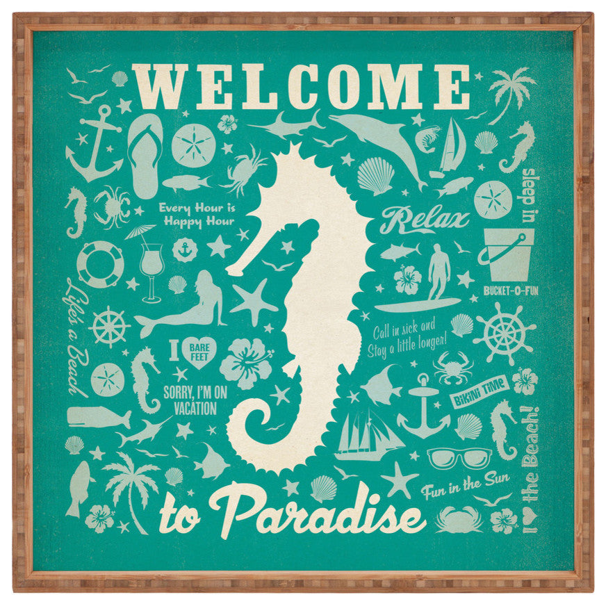 Anderson Design Group Seahorse Pattern Square Tray, Medium