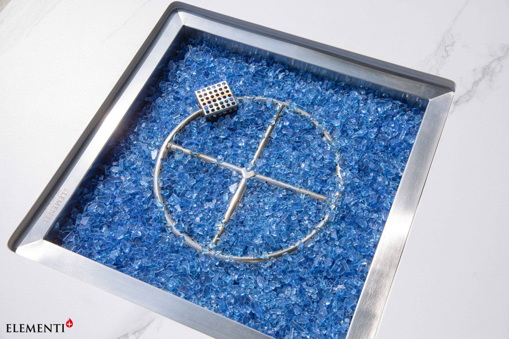 The Elementi Plus Annecy Fire Pit Table is indeed not your average, run-of-the-mill fire table. It belongs to the revolutionary Elementi Plus line of fire table models, which makes it nearly 30 percent larger, more prominent, and more durable compared to older models. The body is made from marble porcelain and metal frames so that you can enjoy a durable and weather-resistant fire table for years to come. The burner is constructed from 16-gauge 304 stainless steel that produces a maximum heat output of 60,000 BTUs, so you can enjoy a powerful and long-lasting fire on your patio, even on chilly evenings. It comes with an aluminum lid that turns the unit into a table when not in use, Caribbean blue fire glass for a natural, richer flame, and a canvas cover to protect your unit from potential wear and tear.