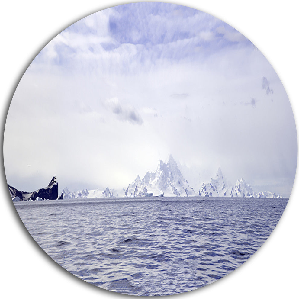 Bring Contemporary Abstraction to your home with this large Circle Metal wall art. This Antarctic Sea with Icebergs Metal Artwork makes it the focal point of any room or office.