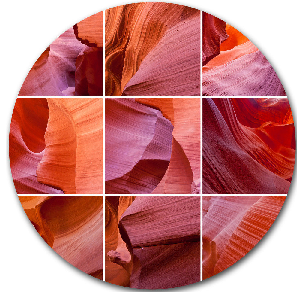 Antelope Canyon Collage, Landscape Photo Round Metal Wall Art, 38"