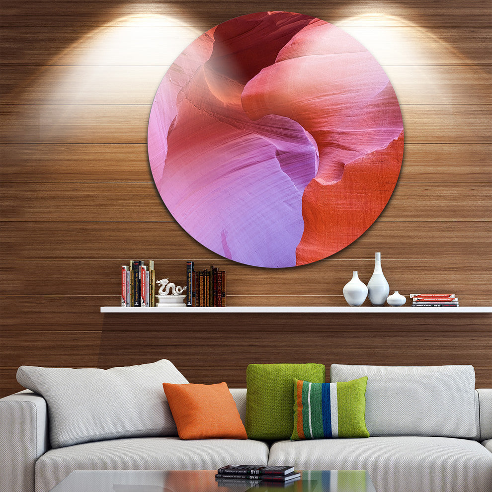 Bring Contemporary Abstraction to your home with this large Circle Metal wall art. This Antelope Canyon Landscape Metal Artwork makes it the focal point of any room or office.