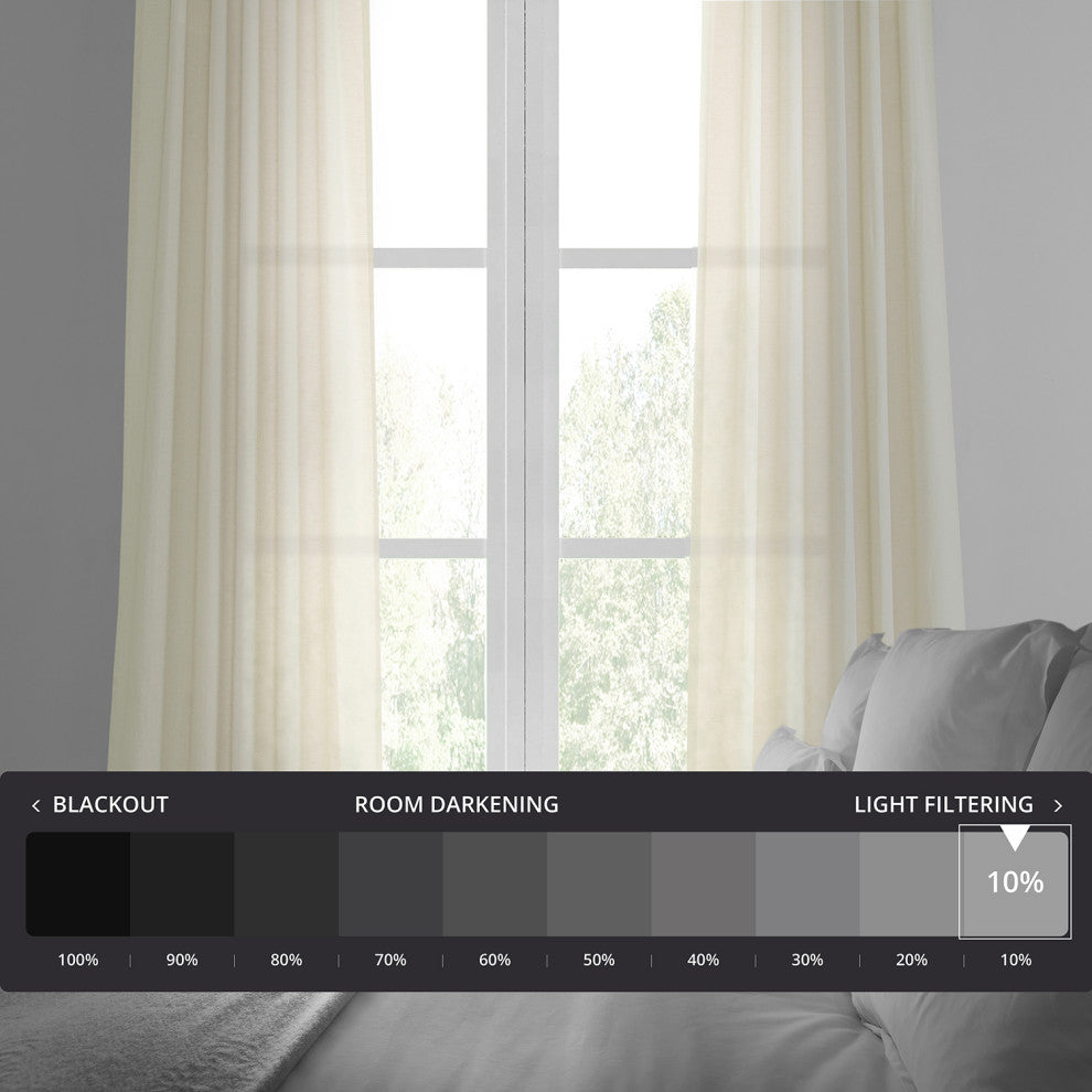 Our signature French Linen Sheer curtains & drapes are second to none when it comes to quality, light diffusion, and style. This sheer panel creates privacy while still allowing sunlight into your home. The high quality linen provides subtle texture to any room. As a general rule, for proper fullness panels should measure 2-3 times the width of your window/opening.