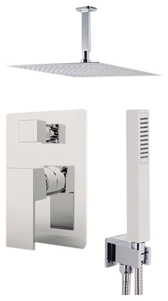 Aquamoon Milan 12" Showerhead, Handshower With Ceiling Arm, Brushed Nickel
