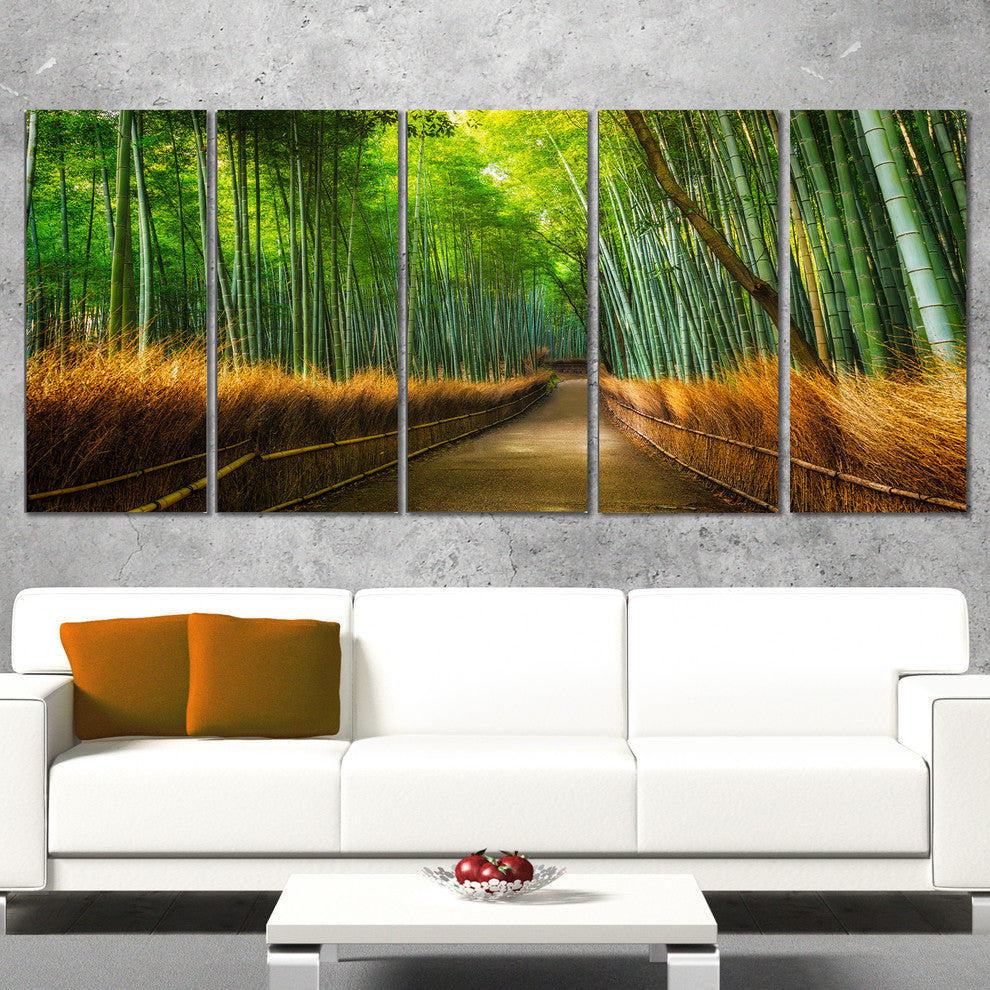 "Arashiyama Bamboo Grove Japan" Oversized Forest Wall Art, 5 Panels, 60"x28"