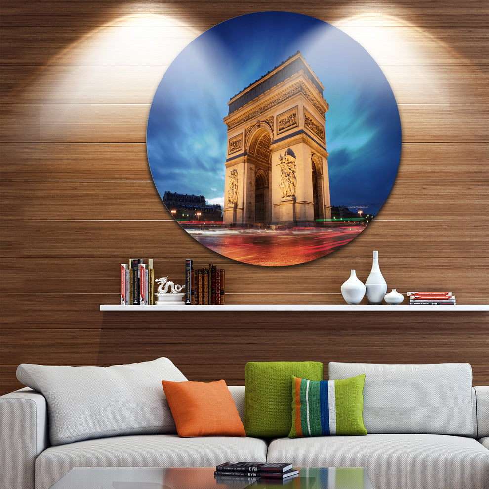 Arch Of Triumph In Paris, Landscape Photo Disc Metal Artwork, 23"