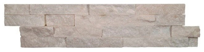 Arctic White Panel 6"x24" quartzite ledger panels feature striking and dynamic white stone. This split face finish is natural and ideal for interior and exterior wall design projects. Accent a back splash or wall with these snowy white panels. We recommen