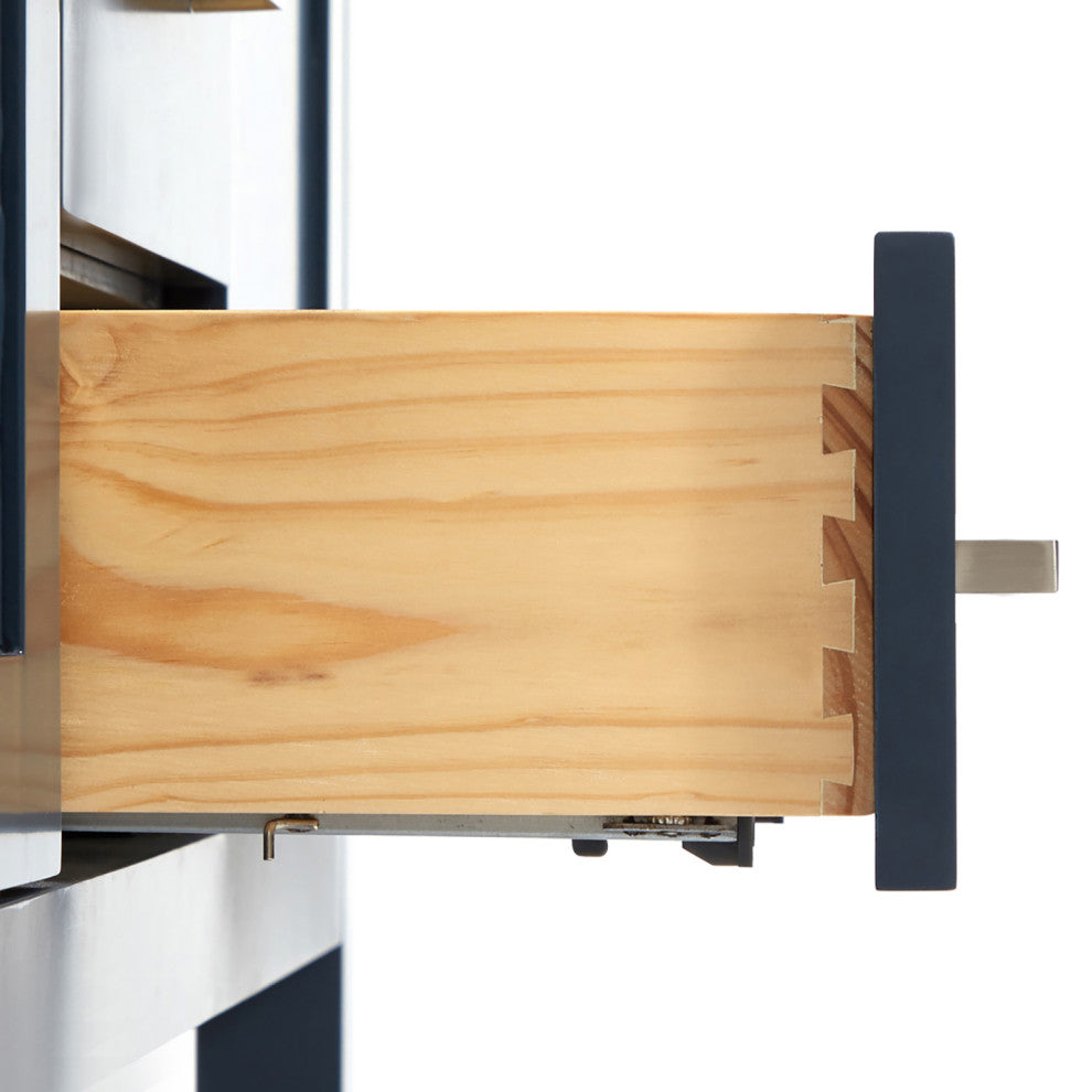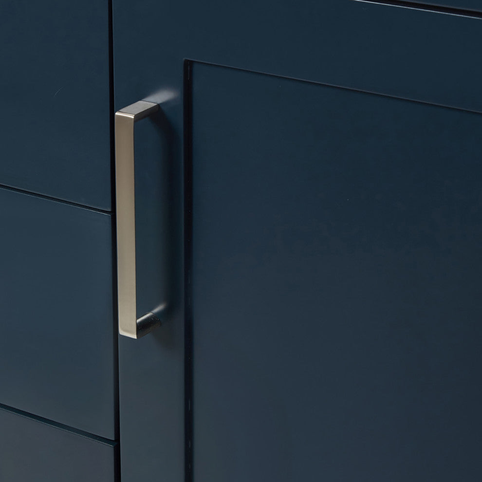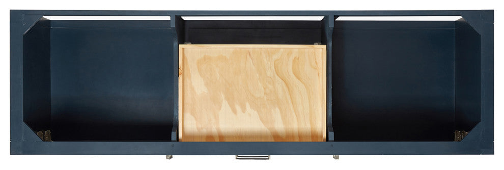 The Bayhill bathroom vanity showcases a sturdy cabinet with a hardwood frame and a large bottom storage area by utilizing an open shelf underneath the cabinets and drawers to meet all your storage needs.- Covered under Ariel''s 3 year limited warranty- 72"W x 22"D x 36"H- Hardwood frame with plywood panel construction for lasting beauty and durability- Midnight Blue painted finish- 2 soft-closing doors with adjustable hinges so you''ll never have to worry about hearing a door slam- 3 full extension, self-closing drawers to meet all your storage needs- Dove-tail construction drawer boxes for additional strength and stability