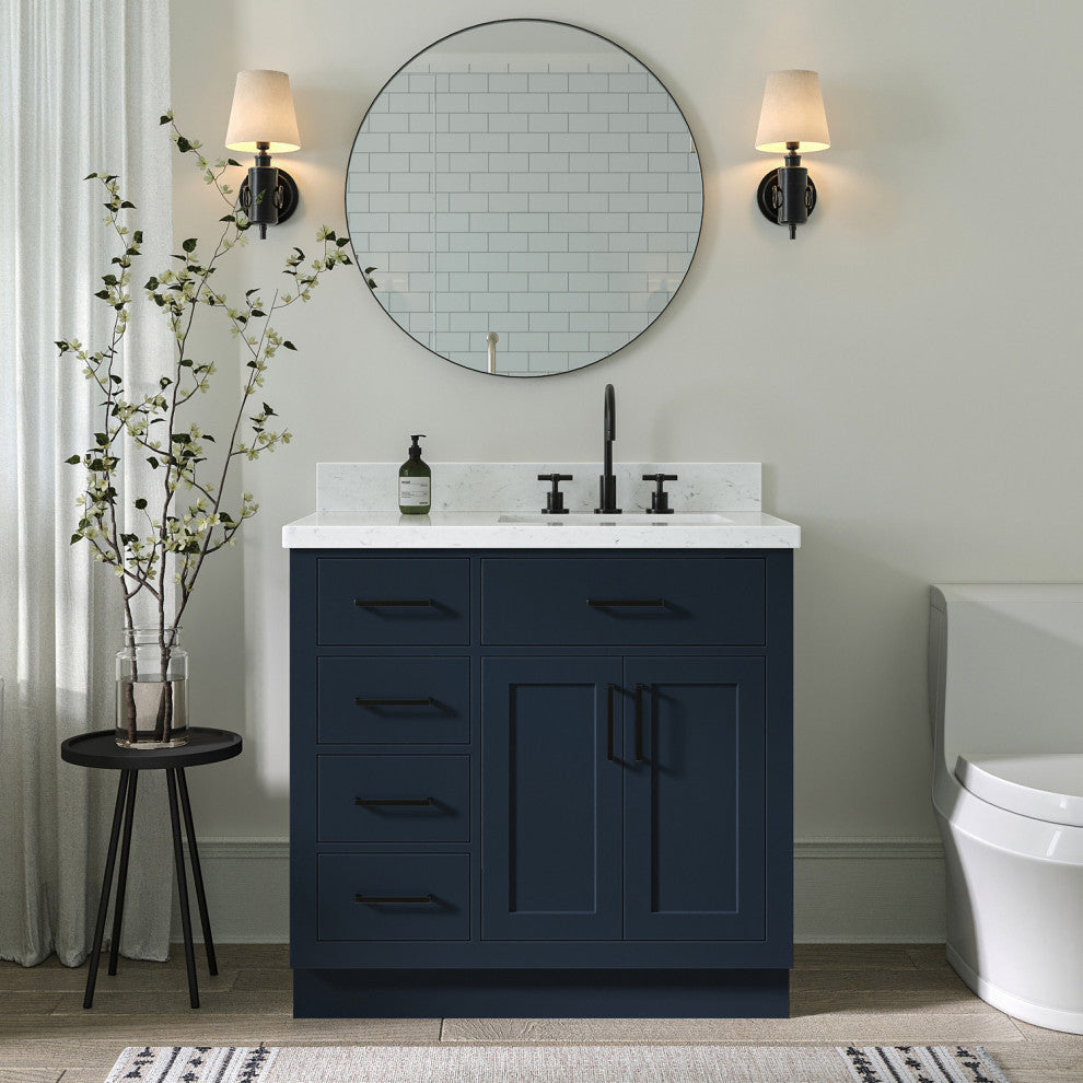 Ariel Hepburn 36" Right Offset Single Rectangle Sink Vanity, Carrara Quartz
