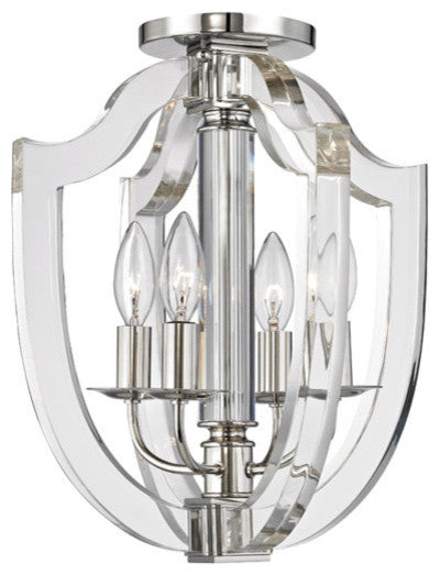 Arietta, 4 Light, Semi Flush, Polished Nickel Finish, Clear Glass
