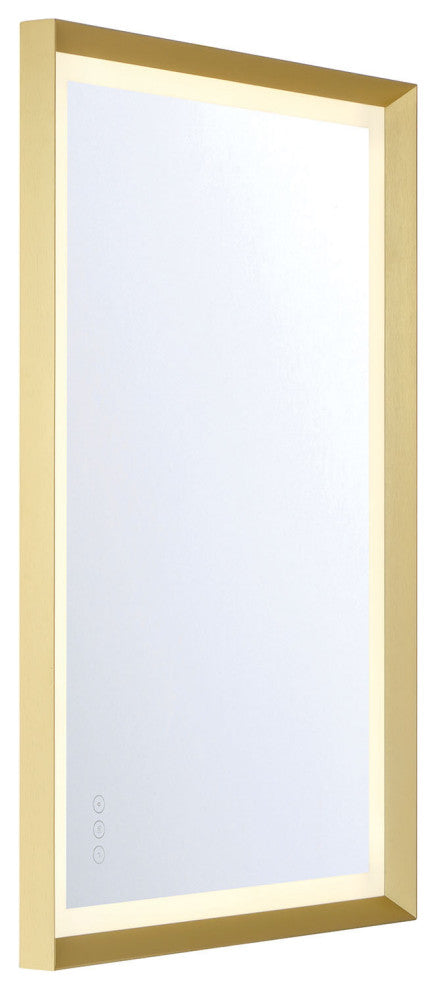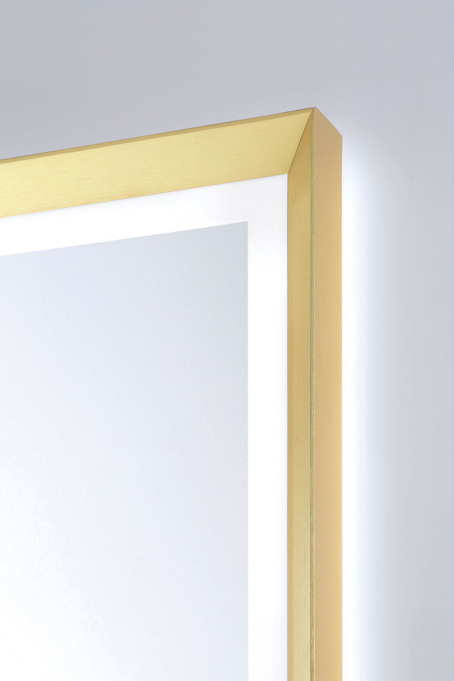 This 24" x 36" Artell mirror in brushed gold offers both beauty and functionality. With integrated LED lighting and a sleek rectangular shape, this mirror is ideal for creating a statement in any room, from bathrooms to hallways, with a warm and elegant gold finish. This product is cETLus certified.•Number of Lights: 1•Bulb Type: LED integrated•Wattage: 65W•LED Color Temperature (K): 3000/4500/6400K•Dimmable: Yes•Bulb Included: Yes•Voltage: 120V•Hardwire or Plug-in: Hardwired