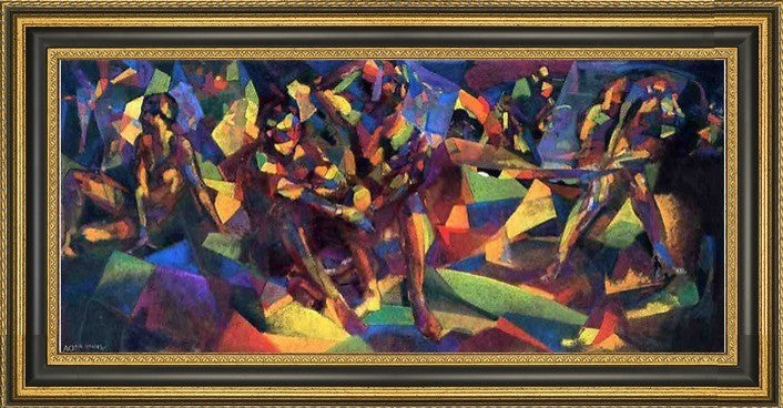 15" x 30" Arthur B Davies The Mountaineers framed premium canvas print reproduced to meet museum quality standards. Our Museum quality canvas prints are produced using high-precision print technology for a more accurate reproduction printed on high quality canvas with fade-resistant, archival inks. Our progressive business model allows us to offer works of art to you at the best wholesale pricing, significantly less than art gallery prices, affordable to all. This artwork is hand stretched onto wooden stretcher bars, then mounted into our 3 3/4" wide gold finish frame with black panel by one of our expert framers. Our framed canvas print comes with hardware, ready to hang on your wall. We present a comprehensive collection of exceptional canvas art reproductions by Arthur B Davies .
