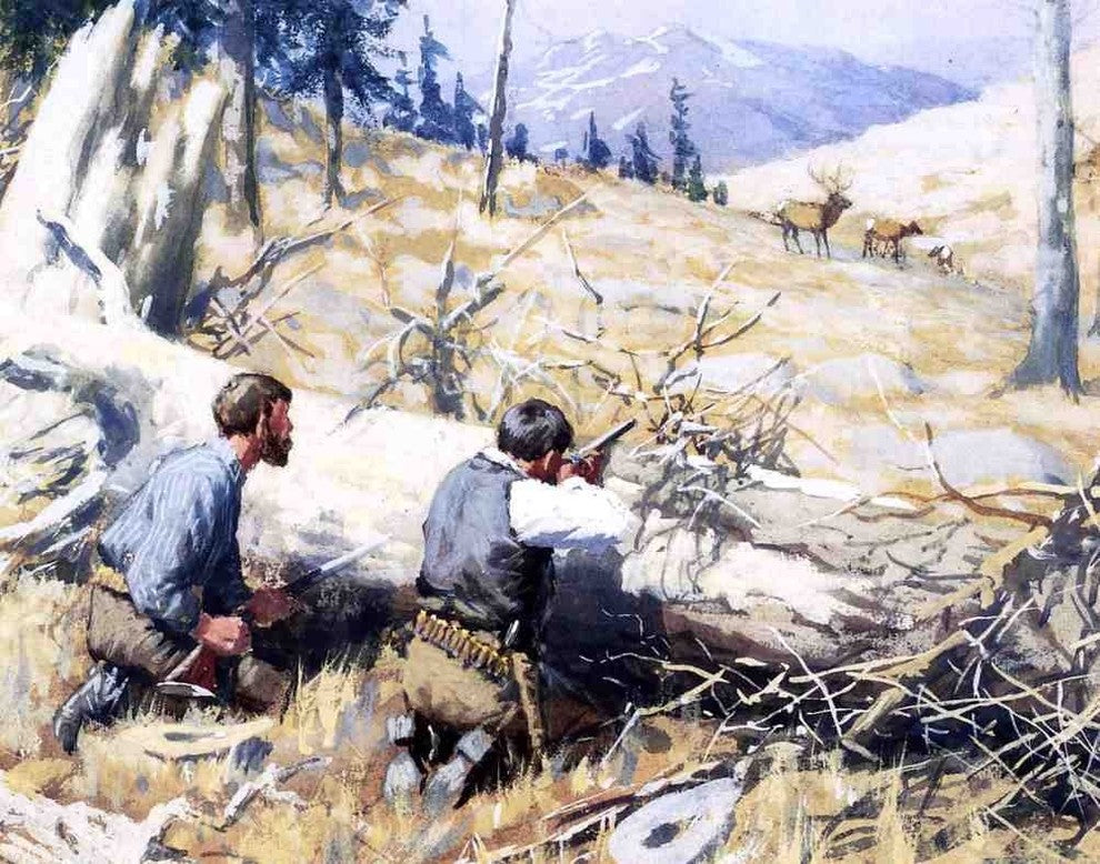 Arthur B Frost Elk Ahead - 20" x 25" Premium Canvas Print