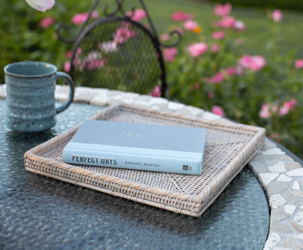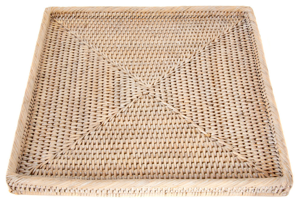 Artifacts Rattan Square Flat Tray, White Wash, 12"x12"x1"