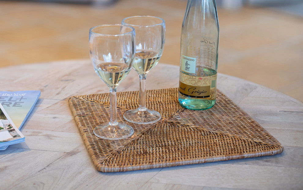 Our handwoven rattan square placemats offer a great way to both decorate and protect your table.Unlike tablecloths, placemats are easy to clean and can offer a fresh and stylish way to add that perfect touch to your table setting. Not only great for the dinner table, but our rattan placemats also work well on any table you wish to protect around the house.Products are handmade and each piece is unique therefore slight variations and imperfections exist.-Dimensions (Inches): 13"x13"x1"-Hand Woven by Local Artisans from Burmese Rattan-Natural and Sustainable Product-Wipe Clean with Damp Cloth-Made in Myanmar