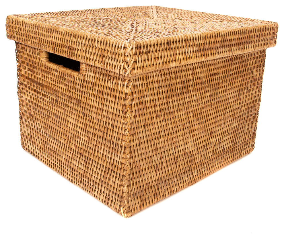 Artifacts Rattan Storage Box With Lid, Letter File, Honey Brown