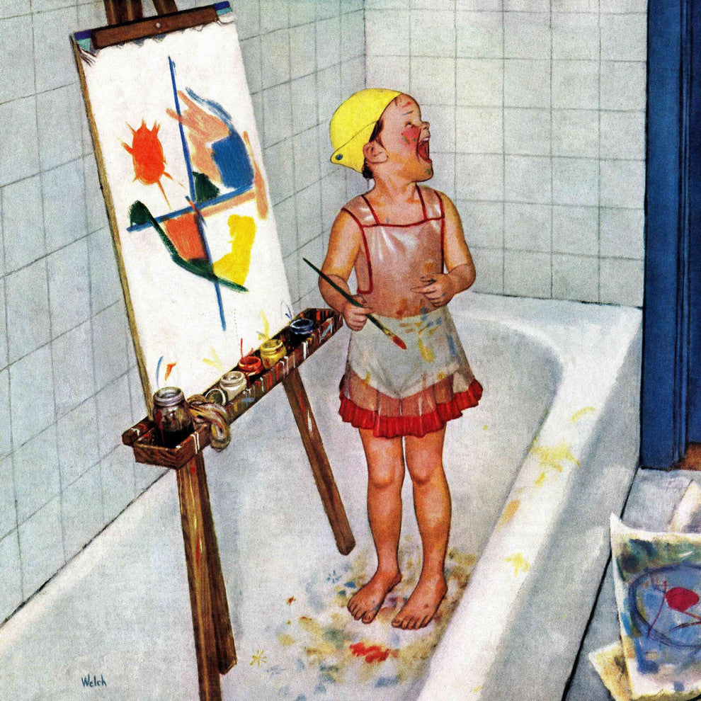 "Artist in the Bathtub" Painting Print on Canvas by Jack Welch