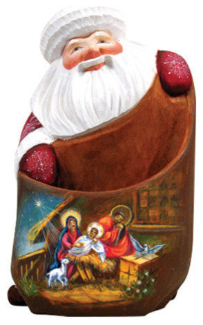 Artistic Wood Carved Holy Family Nativity Santa Claus Sculpture