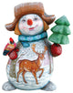 Artistic Wood Carved Reindeer and Snowman Sculpture