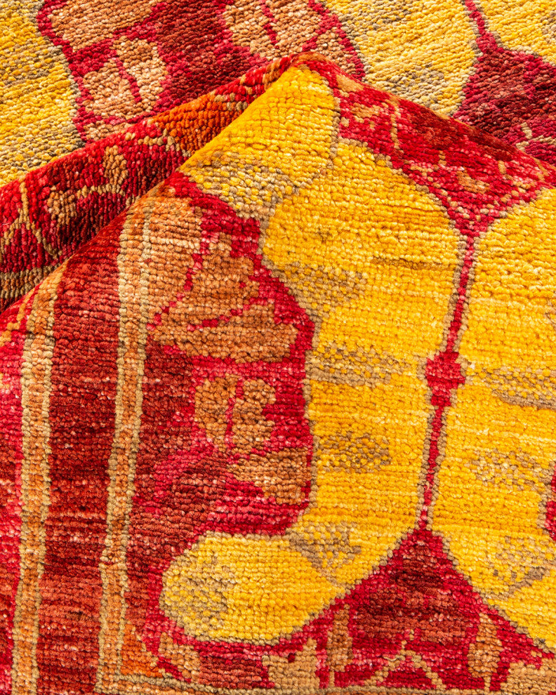 With simple, bold, yet informal designs and a broad palette of colors that ranges from earthy hues to brilliant gems, the rugs in the Arts & Crafts collection infuse a room with a sense of sophisticated rebellion. Nature-inspired motifs are the focal point in lieu of more traditional motifs. Skillfully made with sumptuous wool piles, these rugs bring a harmonious freedom and charming irreverence to any space.