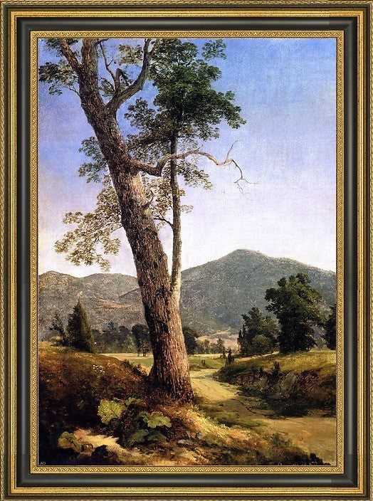 18" x 27" Asher Brown Durand Landscape Beyond the Tree framed premium canvas print reproduced to meet museum quality standards. Our Museum quality canvas prints are produced using high-precision print technology for a more accurate reproduction printed on high quality canvas with fade-resistant, archival inks. Our progressive business model allows us to offer works of art to you at the best wholesale pricing, significantly less than art gallery prices, affordable to all. This artwork is hand stretched onto wooden stretcher bars, then mounted into our 3 3/4" wide gold finish frame with black panel by one of our expert framers. Our framed canvas print comes with hardware, ready to hang on your wall. We present a comprehensive collection of exceptional canvas art reproductions by Asher Brown Durand.