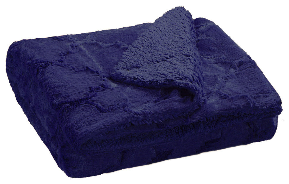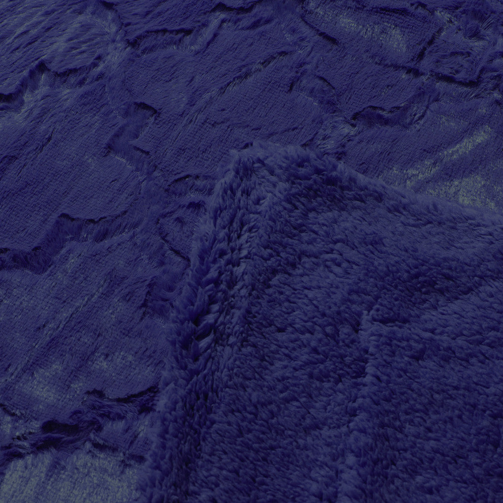 Ashley Jumbo Brushed Faux Fur & Matching Sherpa Borrego Backing Throw, Navy Blue, 60" X 80"