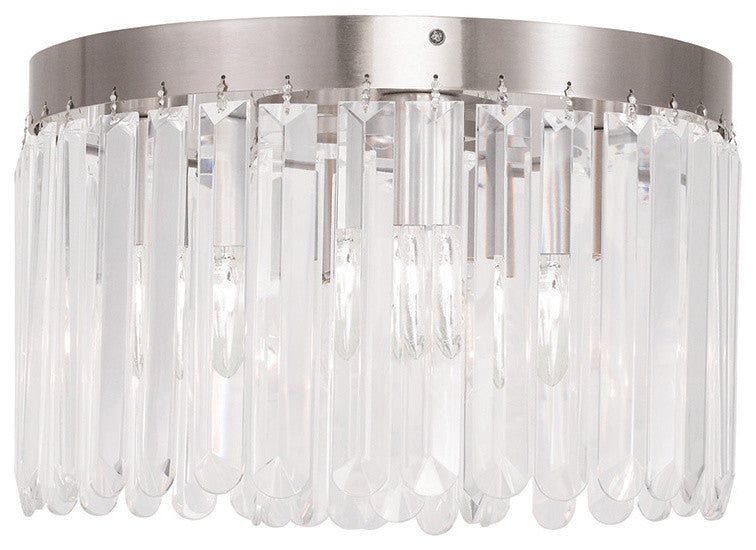 The Ashton four light flush mount emanates the 1920s casual style mixed beautifully with high sophistication. classical touches in the flush mount gives off an art deco feel with the prismatic crystals.