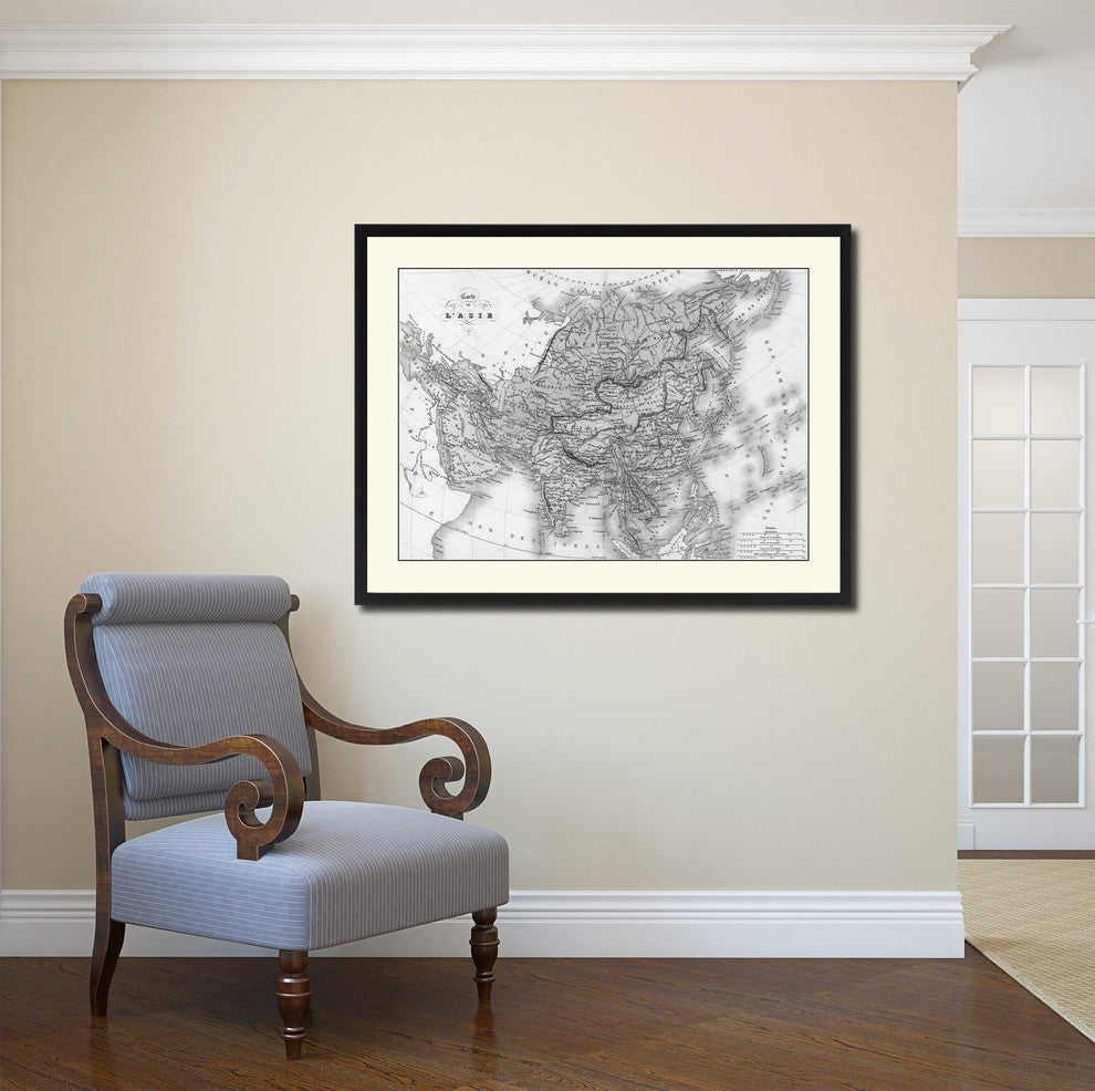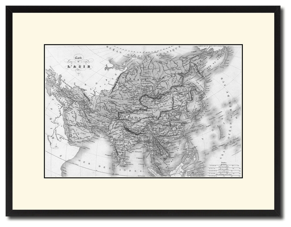 Asia Vintage B&W Map Canvas Print, 16"x21"