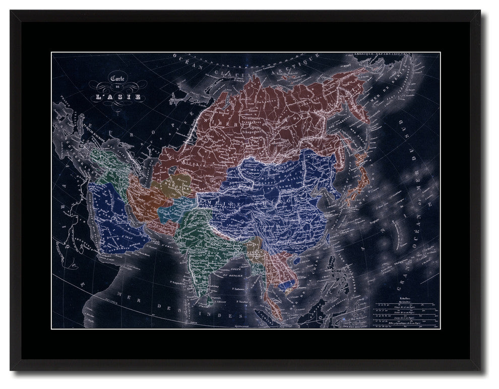 Asia Vintage Vivid Color Map Canvas, 28"x37"