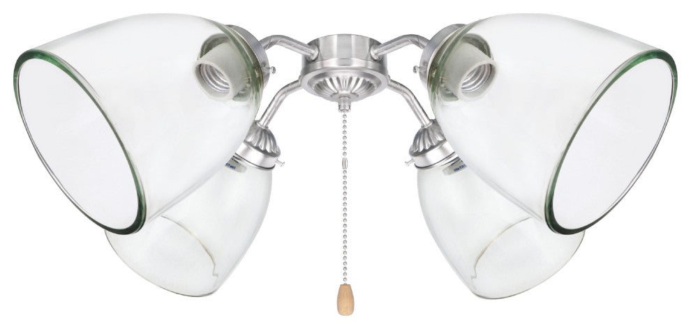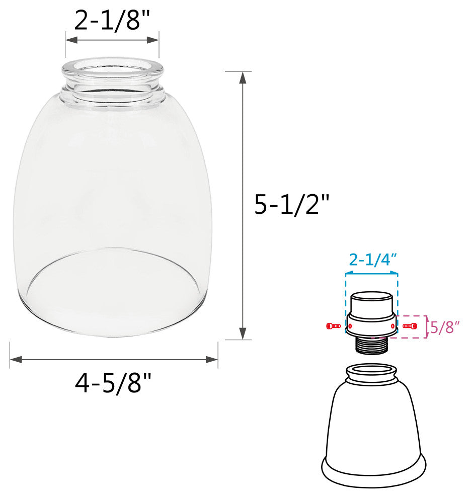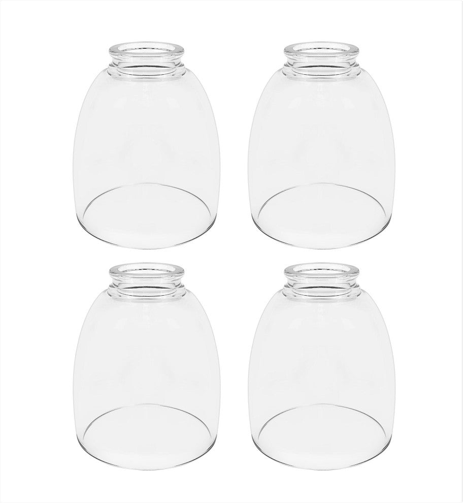 Aspen Creative is dedicated to offering a wide assortment of attractive and well-priced portable lamps, kitchen pendants, vanity wall fixtures, outdoor lighting fixtures, lamp shades, and lamp accessories. We have in-house designers that follow current trends and develop cool new products to meet those trends. Product Detail• Clear replacement glass, 4 pack• 2-1/8" Fitter Size, 5-1/2" high x 4-5/8" diameter• Our replacement glass shades can be used on an assortment of ceiling fan light kit products that use a 2-1/8 inch fitter• Upgrade and / or change the look for your fixtures with an easy to glass change